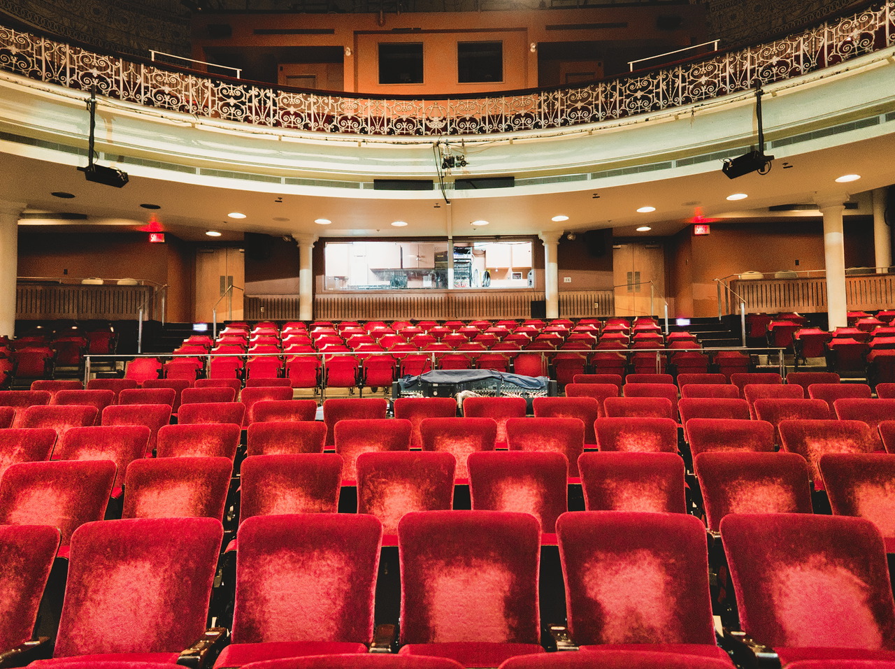 Sur la photo : la « fosse d’orchestre » ici a été reconvertie en espace pour les spectateurs, mais les barrières ont néanmoins été conservées.